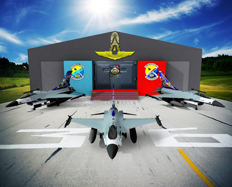ภาพถ่ายของเครื่องบินรบ F-16A/ADF ของกองทัพอากาศไทย จากฝูงบิน 102 กองบิน 1 โคราช ที่ได้รับการเพ้นท์ลายหางใหม่ ในวาระครบรอบ 10 ปี F-16ADF ฝูงบิน 102 และเป็นวาระครบรอบ 24 ปี การเข้าประจำการของ F-16A/B ฝูงบิน 103 กองบิน 1 ด้วยเช่นกัน..