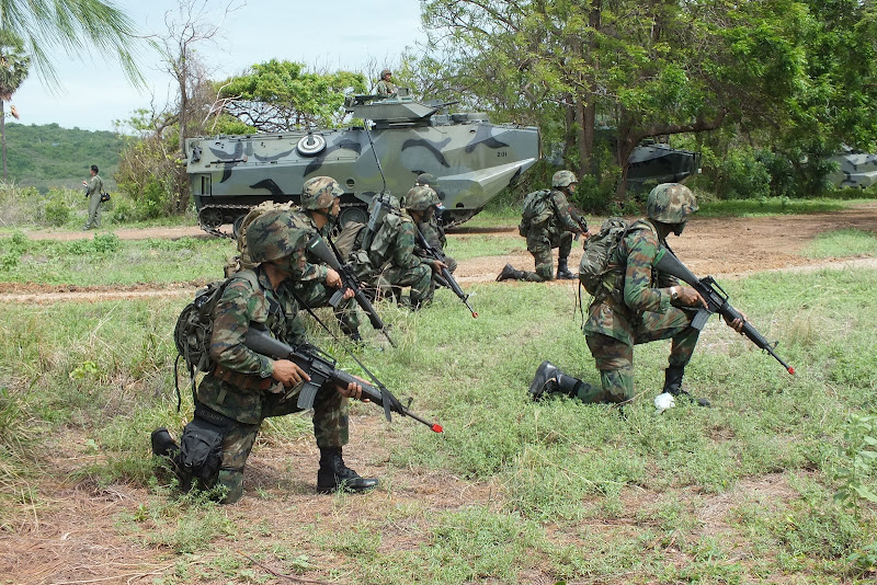 เมื่อประมาณ ปี30 ช่วงปิดเทอมที่มหาลัย เพื่อนไปกางเต้นท์นอนแถวก้นอ่าว จ.ระยอง บังเอิญไม่รุ้ว่ามีฝึกยกพลแถบนั้น รุ่งขั้นมีทหารมาบอกว่า น้องๆกลางคืนช่วยพรางไฟด้วยเมื่อคืนเข้าตีผิดจุดเลย ตอนแรกไม่เชื่อ เพื่อนถ่ายรูปเต้นท์ที่กางกับรถสะเทินน้ำสะเทินบก วิ่งอยู่ใกล้ๆมาให้ดู เออ...มีแบบนี้ด้วย