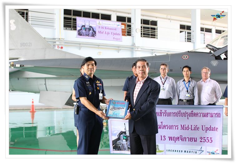 เมื่อ 13 พฤศจิกายน 2555 ได้มีพิธีส่งมอบเครื่องบินรบ F-16 หมายเลข 40308/90021 จากฝูงบิน 403 ของกองทัพอากาศไทย เครื่องแรกเข้ารับการปรับปรุงขีดความสามารถ ตามโครงการ Mid-Life Update (MLU) ที่ ศูนย์ซ่อมบำรุงอากาศยานตาคลี บริษัท อุตสาหกรรมการบิน จำกัด