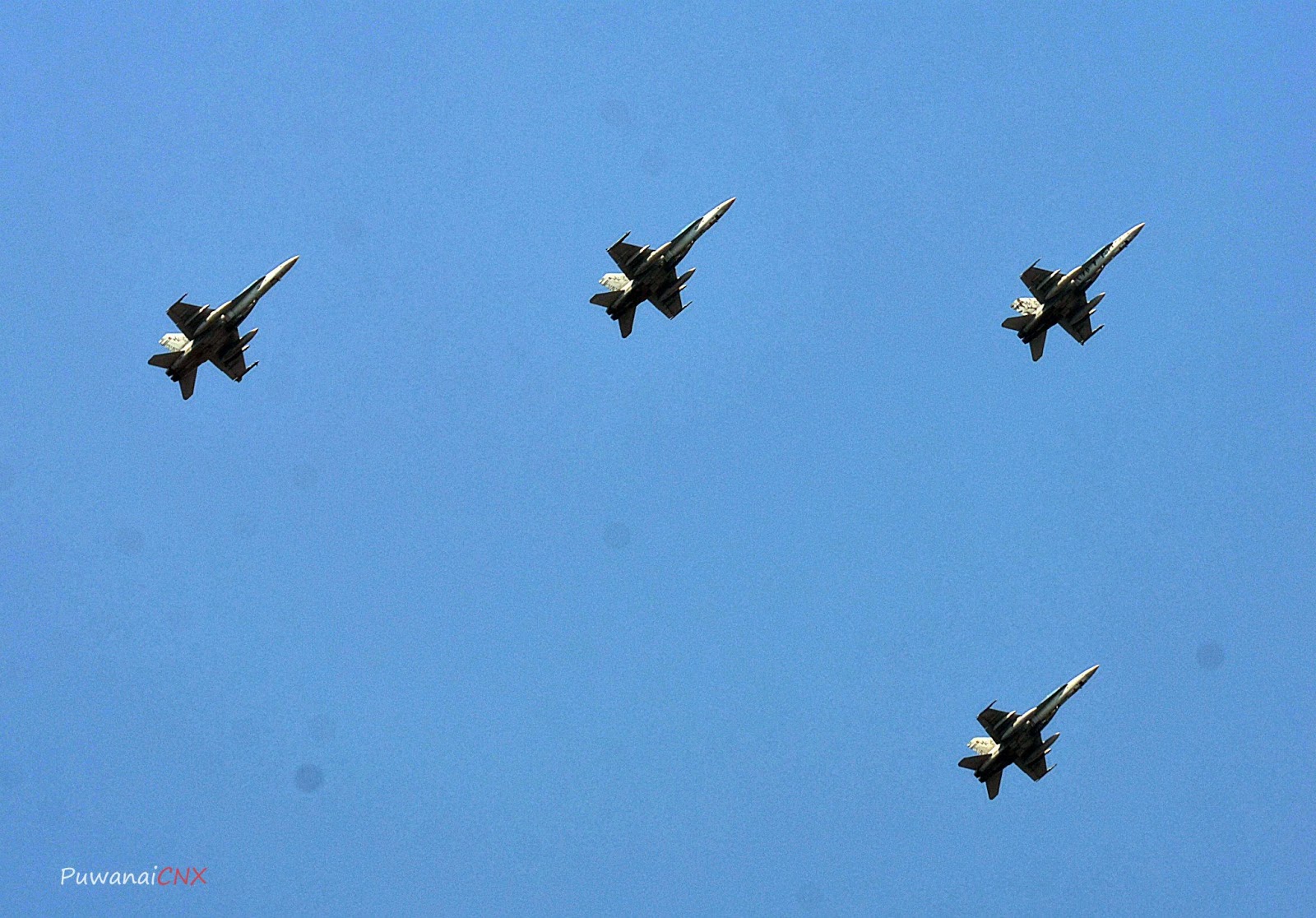 ปีที่แล้ว ผมไปฝึกด้วย แหม F18 มันทิ่งระเบิดจริง แต่ของเรา มัน ให้แค่บินโฉบ ทิ้งแห้ง ไม่รู้เหมือนกันว่า ภาษานักบินเรียกว่าไร แต่ไม่ชอบเลย บ้านเราแท้ๆ มันดัน ควบคุมทุกอย่าง แต่ปีนี้ไม่รู้นะ ว่ามีไรเปลี่ยนแปลงมั้ย แต่ท่าทางจะเหมือนเดิม