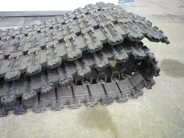 สายพานตัวนี้ มียางรองถอดได้ แต่ที่ยังไม่ติด เดาว่าเพราะเพิ่งไปทดสอบมาในที่ๆดินอ่อน ซึ่งไม่มีความจำเป็นจะต้องใช้