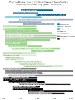 กองทัพบกออสเตรเลียและนาวิกโยธิน มีความน่าสนใจอยู่ในระดับนั่งหลับเช้ายันเย็นได้เลย นั่นคือไม่มีอะไรน่าสนใจเท่าที่ควร งบประมาณส่วนใหญ่จะเน้นไปที่การปรับปรุงกองทัพให้ทันสมัยมากขึ้นในทุกด้าน ทว่าการจัดหาอาวุธใหม่ก็มีน้อยมาก อาทิเช่น โครงการจัดหาอากาศยานไร้คนขับสำหรับลาดตระเวนตรวจการณ์ โครงการจัดหาเฮลิคอปเตอร์โจมตีรุ่นใหม่ทดแทนเฮลิคอปเตอร์ AS-665 Tiger ในช่วงประมาณปี 2025 อีกโครงการก็คือการปรับปรุงรถถังหลัก M1A1 Abrams ให้ทันสมัยมากกว่าเดิม (ดูเหมือนทั่วโลกจะเลือกปรับปรุงรถถังมากกว่าซื้อของใหม่ไปเสียแล้ว)