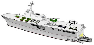 JMSDF ประจำการเรือสนับสนุนการยกพลขึ้นบกดาดฟ้าเรียบชั้น Oaumi จำนวน 3 ลำ โดยใช้ชื่อว่าเรือยกพลขึ้นบกขนาดใหญ่หรือ Tank Landing Ship หรือ Landing Ship, Tank น่าจะเกี่ยวข้องกับรัฐธรรมนูญญี่ปุ่นนั่นแหละครับ เรือชั้น Oaumi มีความยาว 178 เมตร กว้าง 25.8 เมตร กินน้ำลึก 6 เมตร ระวางขับน้ำปรกติ 8,900 ตัน ระวางขับน้ำเต็มที่ 14,000 ตัน ติดตั้งระบบป้องกันตัวระยะประชิด Phalanx CIWS จำนวน 2 ระบบ อู่ลอยใต้ท้องเรือสามารถบรรทุกยานลำเลียงโฮเวอร์คราฟ Landing Craft Air Cushion (LCAC) จำนวน 2 ลำ มีจุดจอดเฮลิคอปเตอร์ขนาดใหญ่ท้ายเรือจำนวน 2 จุด แต่ไม่ปรากฎลิฟท์ขนาดใหญ่รองรับเฮลิคอปเตอร์ ส่วนลิฟท์ด้านหน้าเรือก็มีขนาดไม่ใหญ่นัก โรงเก็บขนาดใหญ่ใต้ดาดฟ้าเรือรองรับรถถังหลักจำนวน 10 คันพร้อมทหารจำนวน 330 นาย บริเวณหัวเรือไม่มีประตูเปิดจึงไม่สามารถส่งกำลังบำรุงถึงหน้าหาดได้ ดูจากภาพแล้วน่าจะเรียกว่าเรือ LPD Landing Platform, Dock มากกว่า เรือชั้น Oaumi เข้าประจำการระหว่างปี 1998 ถึง 2003