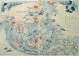 หนึ่งในแผนที่ New Asia Order แสดงประเทศสมาชิกวงศ์ไพบูลย์มหาเอเชียบูรพา ราชอาณาจักไทยกินดินแดนไปถึงเกาะสุมาตรา ซาราวัก และเกาะลังกาโน่น ส่วนญี่ปุ่นจับจองออสเตรเลีย นิวซีแลนด์ และอินโดนีเซียซึ่งเป็นแหล่งพลังงานขนาดใหญ่ นี่คือความฝันบนหอคอยงาช้างที่ไม่มีวันเป็นจริง