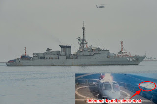การใช้เรือยาง 3 ลำวิ่งแปรขบวนเข้าโจมตี เป็นสิ่งที่ซาอุเคยโดนมาแล้วเมื่อต้นปี พวกเขาเปลี่ยนมาเป็นโหมดโหดคือยิงก่อนถาม ซึ่งอันที่จริงก็ควรจะทำแบบนี้ตั้งนานแล้ว ผู้เขียนไม่ทราบว่าเรือยางโดนยิงด้วย ปืนใหญ่ขนาด 76 มม.ปืนกลขนาด 20 มม.ปืนกลขนาด 12.7 มม.เครื่องยิงจรวดขนาด 40 มม.หรือระบบอาวุธป้องกันระยะประชิด Phalanx กันแแน่ แต่คงไม่ใช่จรวดต่อสู้เรือรบ Harpoon ร้อยเปอร์เซนต์ เพราะเป้าหมายอยู่ใกล้มากเกินไป ทั้งยังราคาถูกกว่าจรวดไม่รู้กี่ร้อยเท่า