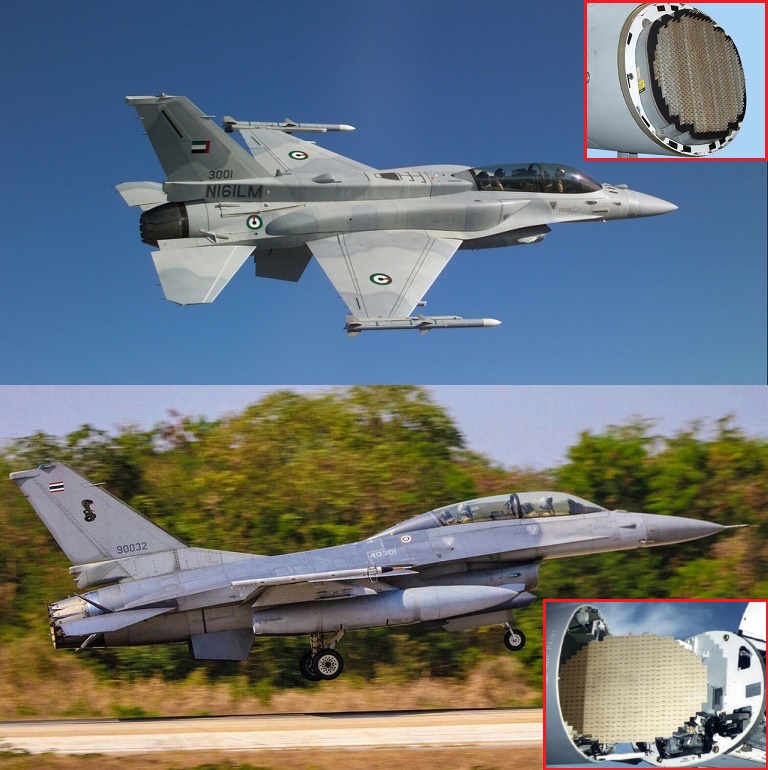 F-16 Block 60 ของกองทัพอากาศสหรัฐอาหรับเอมิเรตส์ติดเรดาร์ APG-80 และF-16 A/B Block 15 MLU กองทัพอากาศไทยติดเรดาร์ AN/APG-68(V)9