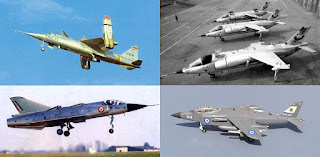 EWR VJ 101 จากเยอรมันพัฒนาสำเร็จเป็นลำแรกสุด ใช้เครื่องยนต์จำนวน 6 ตัวในการลอยตัวและขับเคลื่อน รูปร่างยาวแหลมเหมือนดินสอ ปลายปีกติดเครื่องยนต์ปรับขึ้นลงทั้งอัน ความต้องการคือ 2.0 มัคแต่เอาเข้าจริงได้ครึ่งเดียว นี่คือเครื่องบินขับไล่ที่น่ากลัวที่สุดแห่งยุค เพราะมีเครื่องยนต์ที่สามารถระเบิดได้ตลอดเวลา ก็เลยมาเร็วเคลมเร็วไปเร็วก่อนใคร เครื่องบินลำถัดไปมีชื่อว่า Dassault Mirage IIIV จากฝรั่งเศส เอาเครื่องบินขับไล่ปีกสามเหลี่ยมมาติดเครื่องยนต์จำนวน 8 ตัว จากนั้นจึงใส่เครื่องยนต์สำหรับยกตัวหรือ Life Jet เข้าไป บินได้เร็วสุดถึง 2 มัค และมีพี่น้องคลานตามกันมาอยู่ทั่วโลก นาโต้อาจปราบวอร์ซอสำเร็จใน 10 วัน แต่ต้องใช้หนี้ค่าซ่อมบำรุงไปอีก 10 ปี เพราะเครื่องยนต์ 9 ตัวจากเครื่องบินฝรั่งเศสนี่เอง