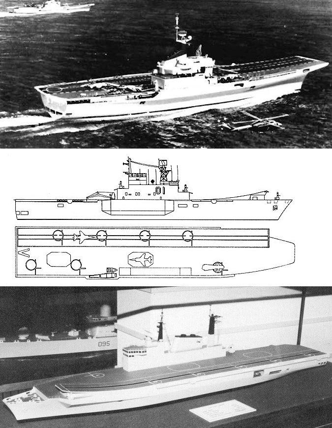 ลำที่สองโผล่ขึ้นมาในปี 1983 ใช้ชื่อว่า Vickers Versatile Aircraft Carrier หรือ VVAC ระวางขับน้ำ 13,000 ตัน บรรทุกอากาศยานได้ 16 ลำ ลานสกีจัมป์หัวเรือทำมุม 15 องศา ติดตั้ง Phalanx CIWS จำนวน 3 ระบบ ส่วนลำที่สามเผยโฉมในปีเดียว ใช้ชื่อว่า Vickers Light Fleet Carrier ระวางขับน้ำ 24,000 ตัน ยาว 202 เมตร กว้าง 32 เมตร บรรทุกแฮริเออร์จำนวน 15 ลำและเฮลิคอปเตอร์จำนวน 2 ลำ ติดตั้งจรวดต่อสู้อากาศยาน Sea Wolf จำนวน 2 ระบบ และ Goal Keeper CIWS อีกจำนวน 2 ระบบ ลานสกีจัมป์หัวเรือไม่ได้บอกองศา เท่ากับอังกฤษมีเรือถึง 3 ขนาดให้ลูกค้าได้เลือกซื้อ