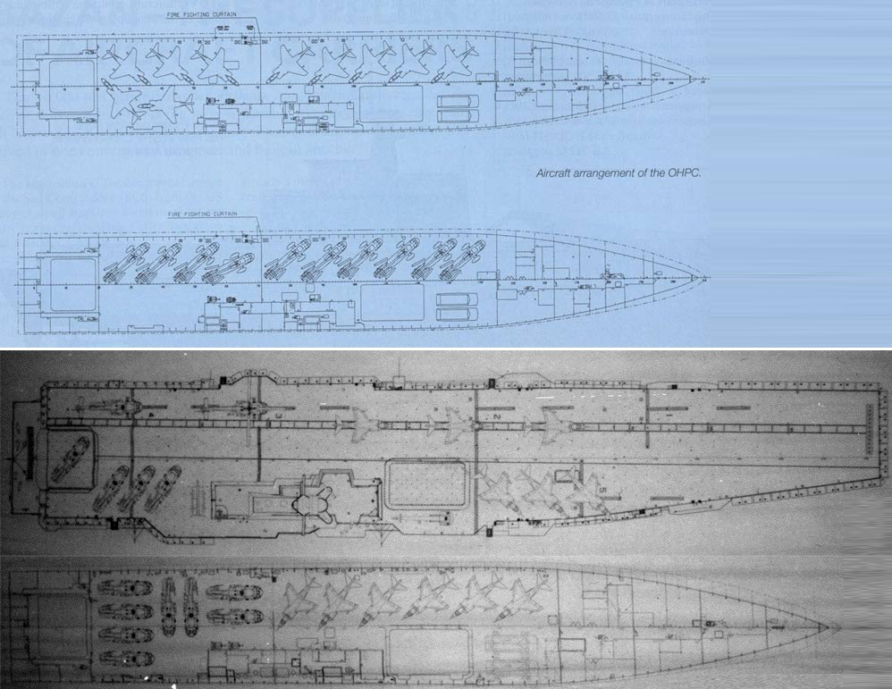 จะเห็นชัดว่าในตำแหน่งที่ Lift ถูกยกลงจากชั้นดาดฟ้าบินมายังชั้นโรงเก็บอากาศยานใต้ดาดฟ้านั้น จะลึกเข้าไปในตัวเรือราวหนึ่งชั้นห้อง