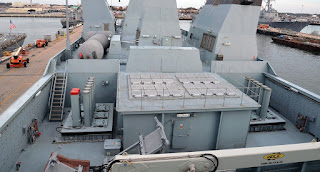เรามาชมทีเด็ดทีขาดของเรือกันดีกว่า นี่คือภาพถ่ายจากเรือชั้น Iver Huitfeldt ของเดนมาร์ก จะเห็นได้ว่ากลางเรือมีแท่นยิง Mk-41 จำนวน 32 ท่อยิงสำหรับจรวดต่อสู้อากาศยาน SM-2 ขนาบข้างด้วยแท่นยิง Mk-56 จำนวน 24 ท่อยิง ซึ่งในภาพใส่จรวด ESSM ไว้เพียงสองนัด (ที่มีฝาปิดสีแดง) และใส่จรวดต่อสู้เรือรบ Harpoon ได้อีก 8 นัด เท่ากับว่าเรือสามารถติดจรวดได้มากสุดถึง 64 นัด โดยมีเครนขนาดใหญ่ของ Heila Crane สำหรับติดตั้งจรวดในท่อยิงแนวดิ่ง