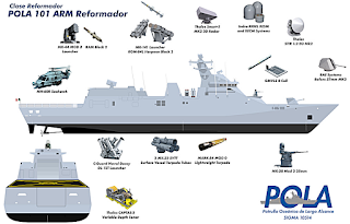 นี่คือเรือฟริเกตอเนกประสงค์ชื่อ POLA 101 ARM Reformador สร้างขึ้นเองโดยอู่ต่อเรือภายในประเทศ ติดอาวุธทันสมัยล้นลำตั้งแต่หัวจรวดท้าย เริ่มจากปืนใหญ่ 57 มม.ยิงได้เร็วสุด 220 นัดต่อนาที ถัดไปเป็นแท่นยิงแนวดิ่ง MK56 จำนวน 8 ท่อยิง สำหรับจรวดต่อสู้อากาศยาน ESSM (เม็กซิโกซื้อมาเฟสแรก 6 นัด) ต่อด้วยปืนกลอัตโนมัติขนาด 25 มม.ใช้เรดาร์กับระบบอำนวยการรบจาก Thales กลางเรือมีจรวดต่อสู้เรือรบ Harpoon Block II อีก 8 นัด บนโรงเก็บเฮลิคอปเตอร์ติดแท่นยิงจรวด RAM Block II อีก 21 นัดใช้เป็น CIWS ที่ดียอดเยี่ยม ท้ายเรือติดตั้งโซนาร์ท้าย Thales CAPTAS-2 ซึ่งมีโหมดการทำงานทั้ง Passive และ Active จัดว่าทันสมัยมากที่สุด โดยใช้ตอร์ปิโดเบาปราบเรือดำน้ำรุ่นใหม่ Mk-54 จากอเมริกา