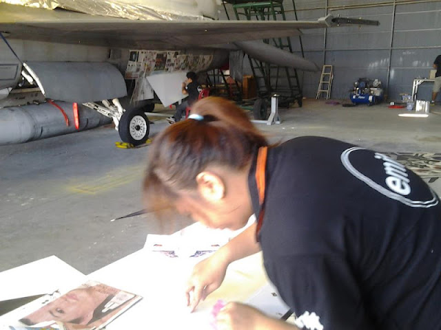 ภาพแสดงทำงานของบรรดาช่างเพ้นท์สี.. ก่อนที่จะมาเป็นลายหางใหม่อย่างที่เห็น