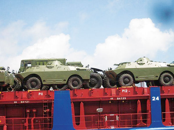 Scores of tanks and armoured personnel carriers arrived at the port in Sihanoukville yesterday, marking one of the biggest shipments of military vehicles in recent history.