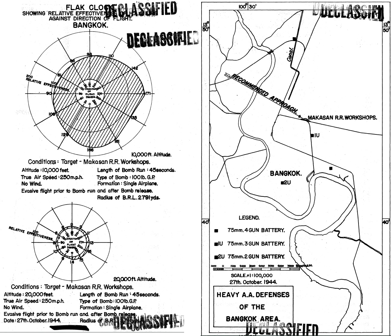 ข้อมูลสำคัญสำหรับฝูงบินทิ้งระเบิดระยะไกลกองบิน 10 ซ้ายมือได้มาจากประสบการณ์ในการรบ ขวามือได้มาจากเสรีไทยซึ่งแฝงตัวเข้ามา