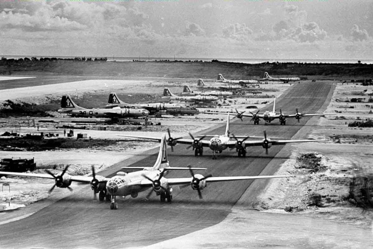 เครื่องบินทิ้งระเบิด B-29 ทยอยออกบินจากกองบิน 20 หมู่เกาะมาเรียน่า ในภาพจะเห็นว่ามีการติดตั้งระบบเรดาร์ AN/APQ-13 ใต้ท้องเครื่องแล้ว
