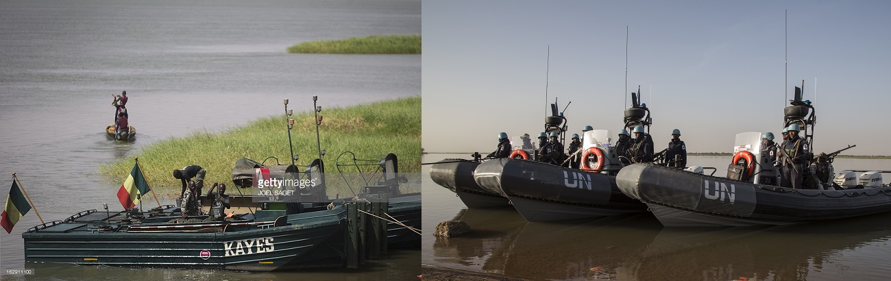 ซ้ายมือทหารมาลีดูแลความสงบในแม่น้ำเมื่ออดีตกาล ขวามือทหารบังคลาเทศสังกัดสหประชาชาติทำหน้าที่แทนในปัจจุบัน