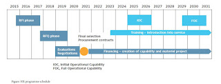ปีหน้าจะเป็นการแข่งขันอย่างเอาจริงเอาจัง ก่อนมีการตัดสินผู้ชนะเลิศกลางปี 2021 จากนั้นโครงการเริ่มเดินหน้าต่อทันที เครื่องบินใหม่เข้าประจำการภายในปี 2030 หรือล่าช้าไม่เกินปี 2031 ส่วนเครื่องบินเก่าปลดประจำการภายในปี 2030 เป็นการทดแทนในอัตราส่วน 1 ต่อ 1 ลำ ฉะนั้นตามแผนจะไม่มีช่วงเวลาที่การป้องกันประเทศอ่อนแอลง